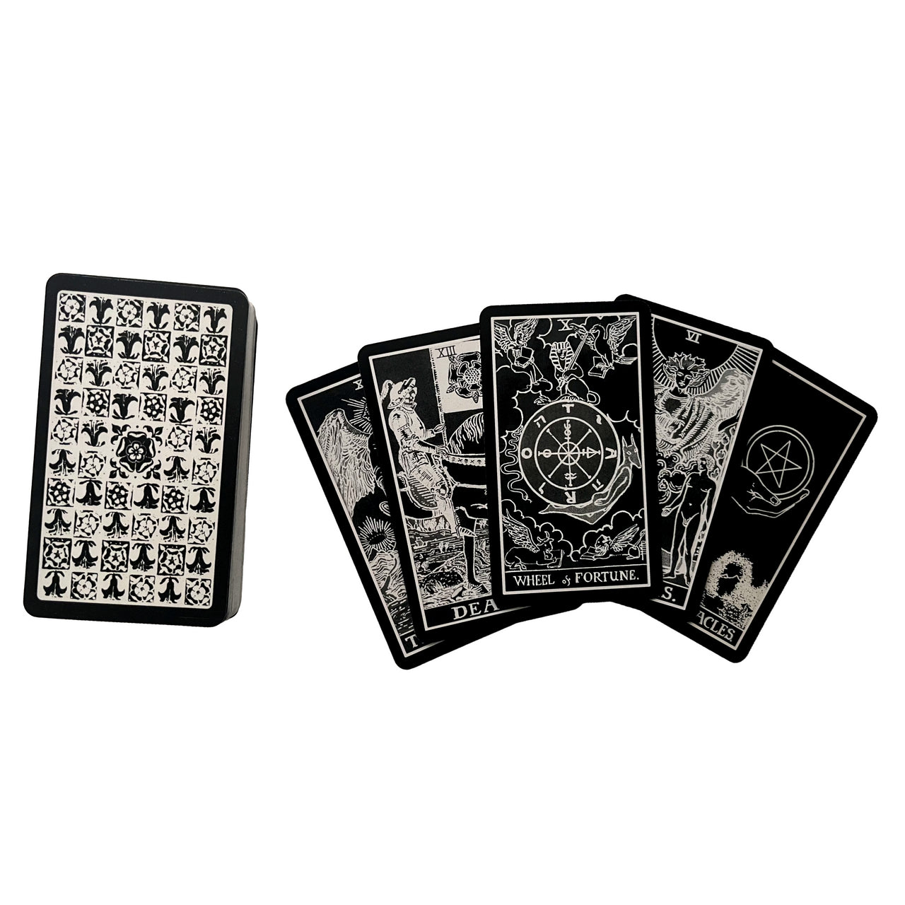 Black as a moonless night, this dark tarot is for venturing into the shadows and returning with answers-- it is as much at ease in a daily reading as it is in a deep dive into witchcraft and divination rituals.