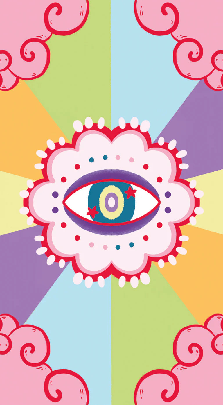 Something in the hues and texture of crayons inevitably appeals to an intimate part of our being. Remembering those first scribbles on paper evokes a deep sense of nostalgia that strikes a chord with us, and we can’t help but feel involved, moved, captivated. These same feelings are inspired by Pastel Prism Tarot, in which the classic 78 Arcana are turned magical and beautiful by a Naïve Art style imbued with the soothing tones of a pink and sky-blue color palette.